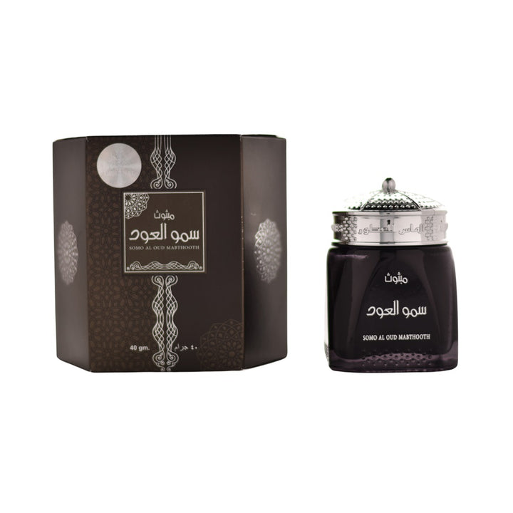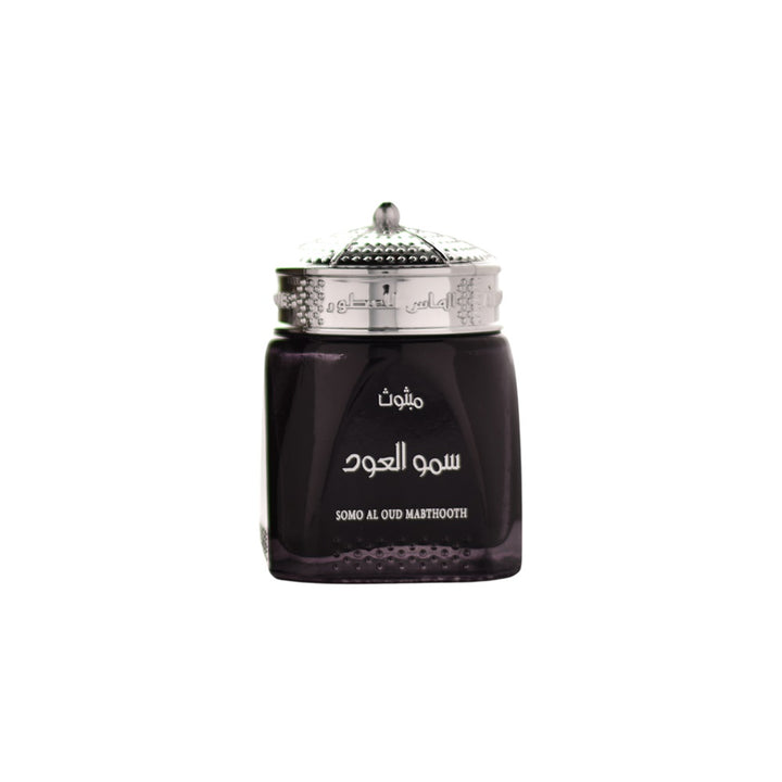 Immerse yourself in the luxurious fragrance of Mabsous Somo Al Oud by Almas Perfumes, a natural mabsous incense crafted from a refined blend of Cambodian oud, sandalwood, musk, and cardamom. This exquisite incense spreads the spirit of oud and elegance throughout any space.